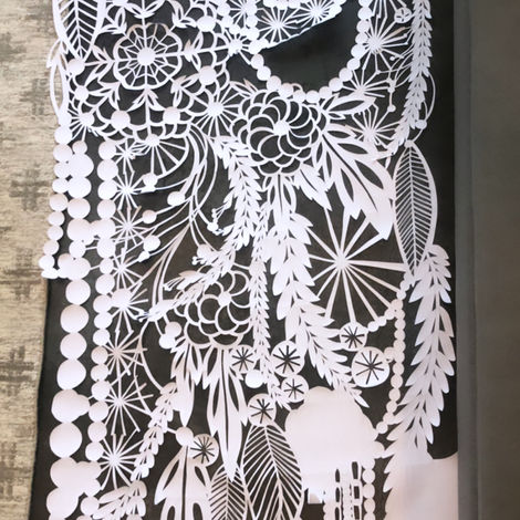 Four 18' panels of hand-cut Tyvek for indoor and outdoor wedding installation.